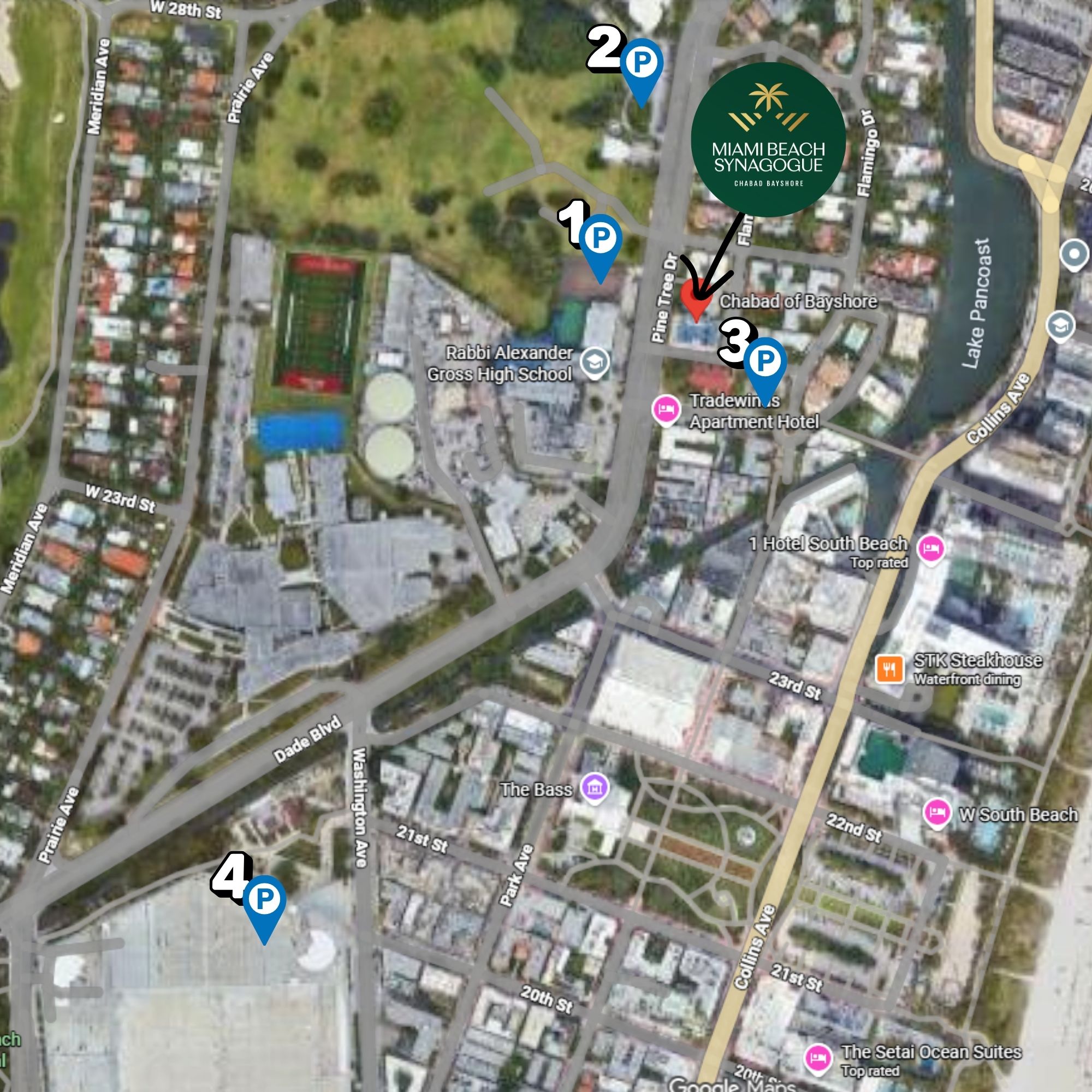 - The City parking garage by Miami City Balet. This lot is a 5 minute walk from Chabad.